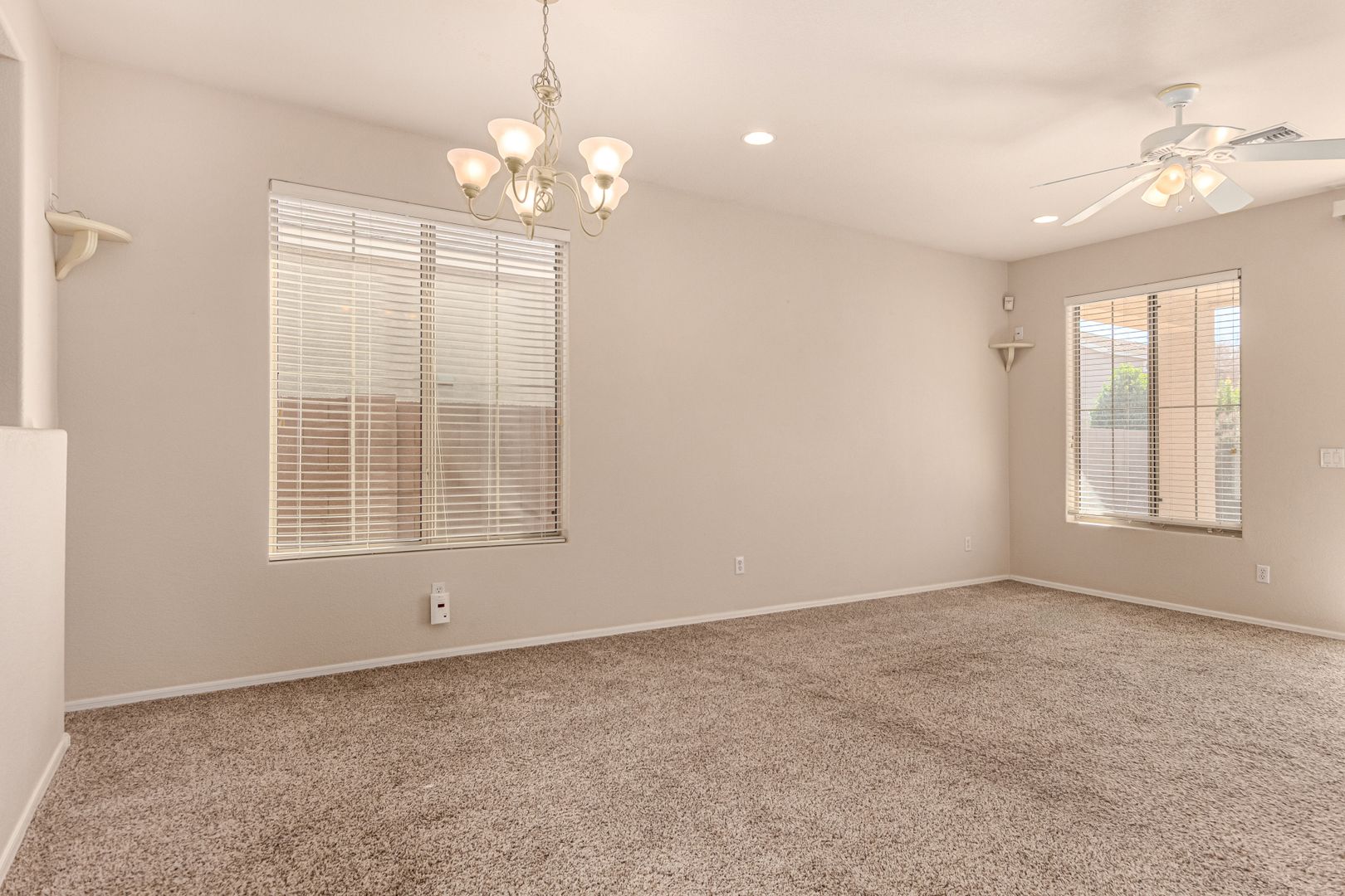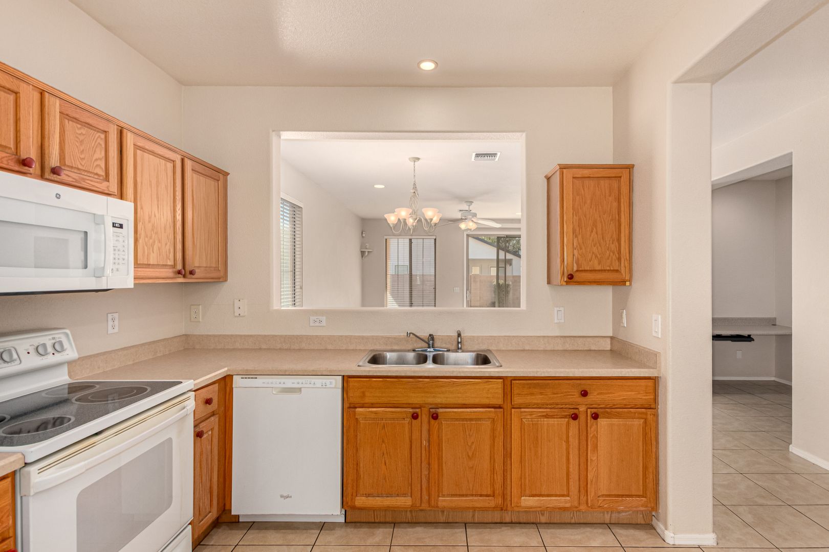 3 bedrooms, 2 bathrooms, and 1450 square feet located near Elliot and Recker in the Higley Groves Community. This single-story home features a 2 car attached garage, a nice sized kitchen with an eat-in dining area. The family room has an entertainment nook. The front yard features a grass lawn, Home is on a tree-lined shaded street across from a community park. Elementary school is within walking distance.