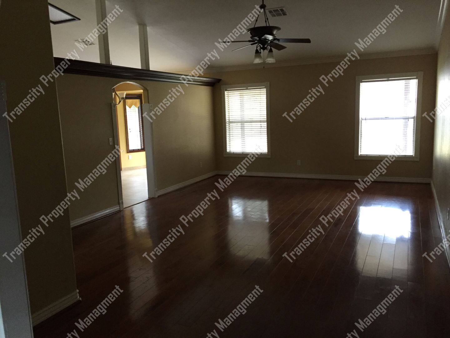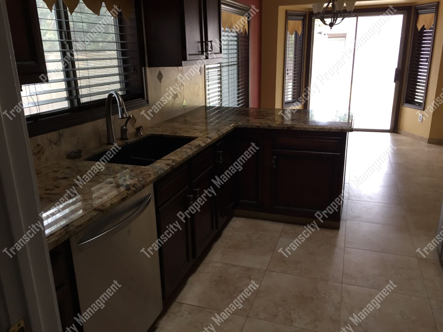 The kitchen is equipped with granite countertops and ample cabinet space, & a large pantry perfect for everyday living and hosting.