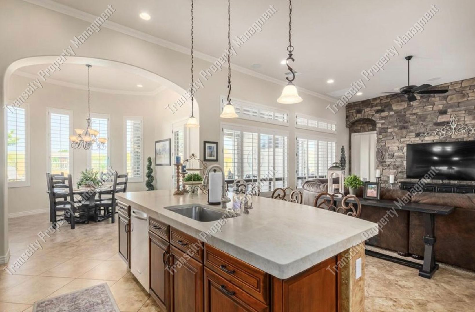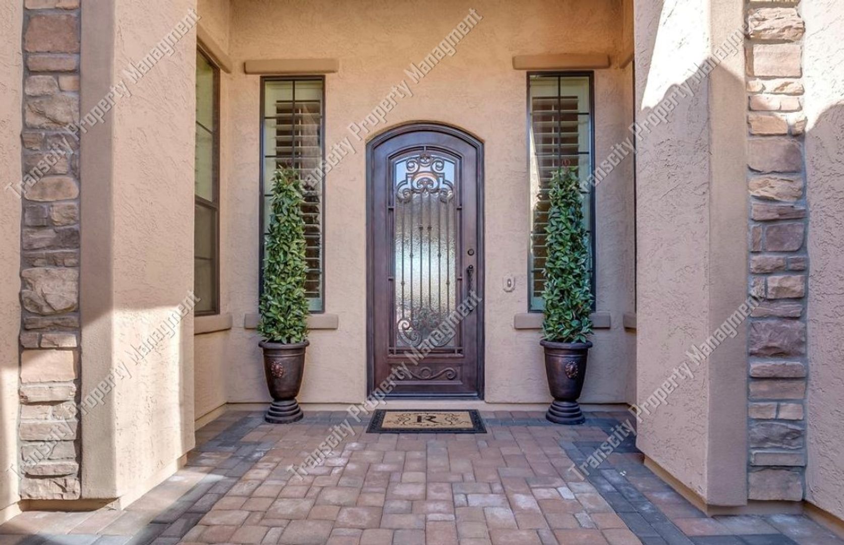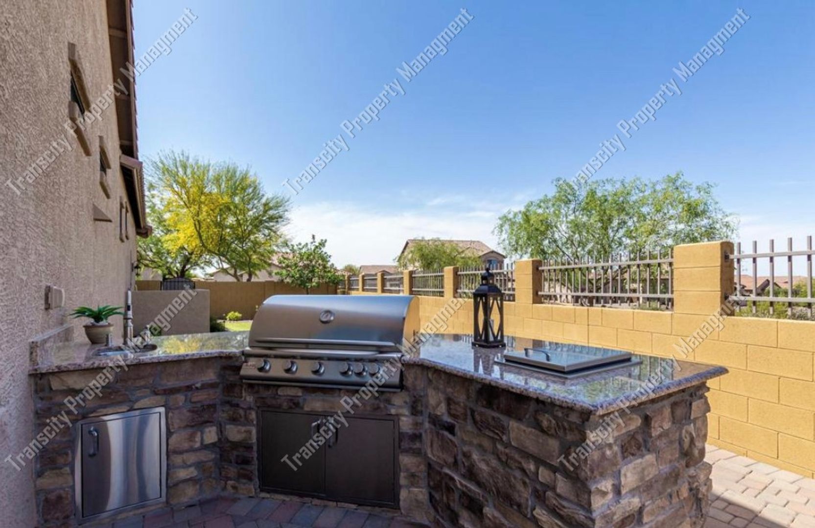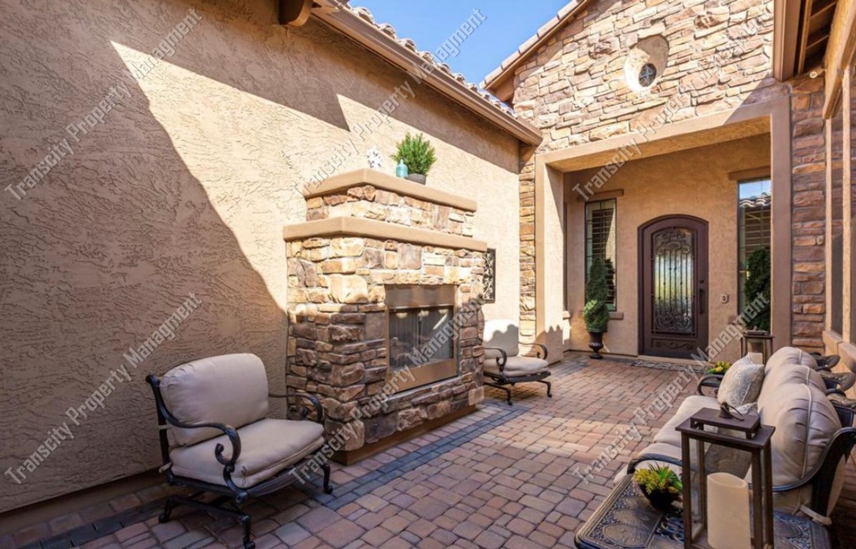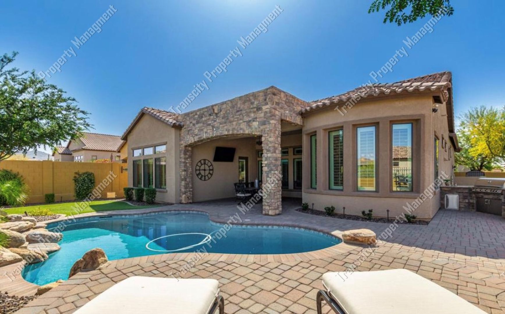 One of Mountain Bridge's Finest homes-- IMMACULATE 3BR + Bonus Room, 3.5 BA, 3 car garage. Customized designer home. North/South PREMIUM corner lot. City light, sunset & mountain views. Resort-like backyard with a stunning pool with rock waterfall, built-in BBQ, sink, and granite counter. Pavers and hardscape, turf & huge covered patio designed for entertaining enjoyment.. Elegant courtyard entry with gas fireplace. Impressive iron front door. Gourmet kitchen, upgraded cabinets, new Taj Mahal Quartzite counters, large island, walk-in pantry, upgraded appliances & custom backsplash - all open to the beautiful dining area and great room. Gorgeous owner's suite with patio access, 2 closets, soaking tub, and rain shower. Amazing bonus room with wood tile floors & separate entrance from the courtyard! The home can be rented partially furnished.